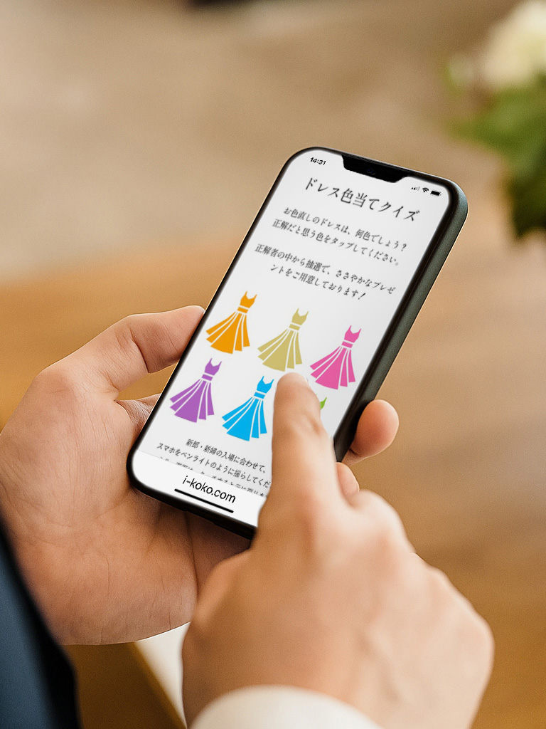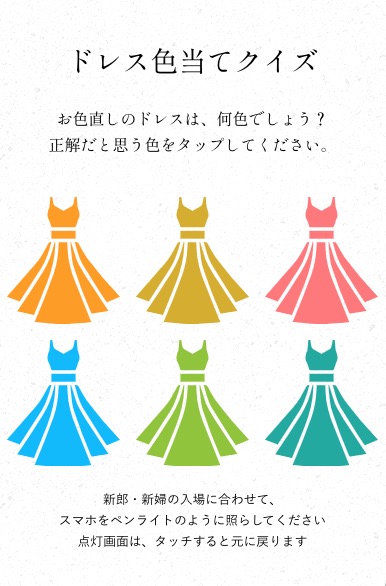 これまで紙のカードや口頭で行っていたドレス色当てクイズが、スマホで簡単に参加できる新しいスタイルに進化しました。